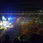 This morning was the morning we got to sleep in. As we waited for our bus, which was 2 hours late, we jammed to music, made new friends, and played games. When we got to the interactive learning place, we played disability foosball and many other games. For the mass gathering, we sat in the box seats. There were 5 speakers, all who talked about personal issues but how God was with them and loved them unconditionally through everything. They were all so inspirational and I think all 30,000 people took something from them. Today my struggles were definitely trying to find something to do because all the lines at the interactive learning stations were very long and we only had limited time. However, my triumphs today were meeting new friends and building closer bonds with people we already met. Today, we saw God in the courage the speakers had to talk about their issues but how they are helping and helped us all. We also saw God in the power and meaning of the speakers and the struggles they tackled and messages they delivered. Overall, there were many personal struggles throughout the day, but none could keep the group from having fun.